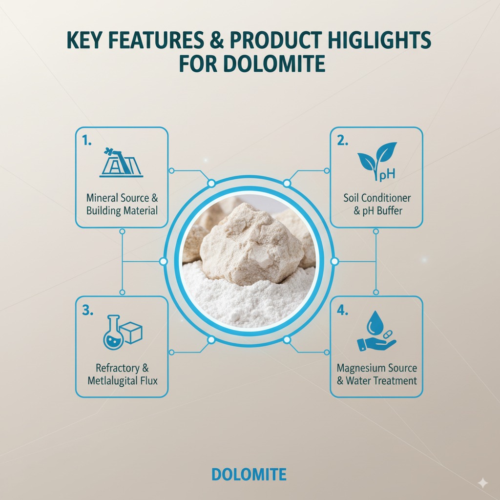 - Composed of calcium magnesium carbonate (Dolomite), known for its durability, chemical stability, and flexibility across multiple industries.